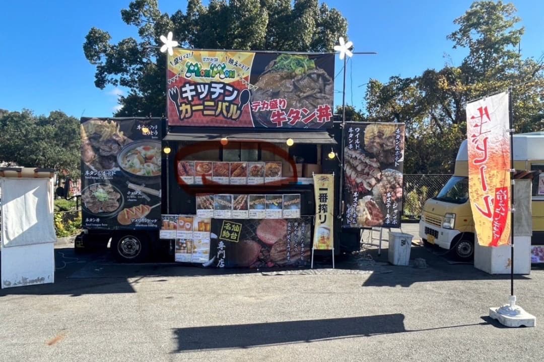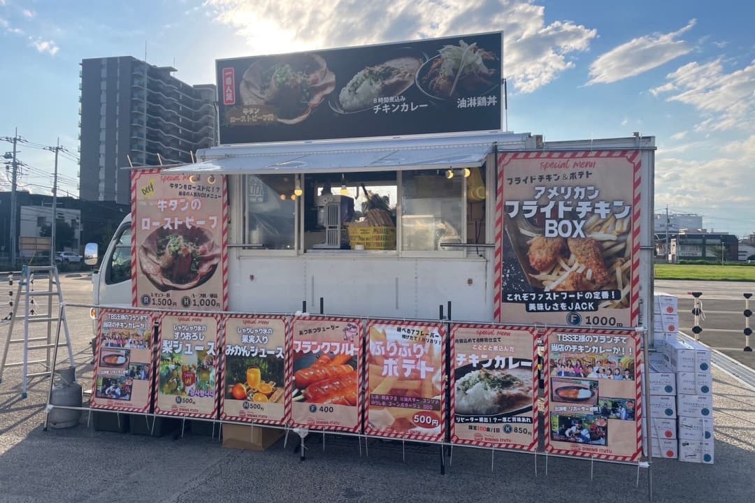 ダイニングいつつ当キッチンカーは、「ダイニングいつつ」の移動販売車として出店しており、店舗の人気メニューを販売できるためラインナップがとても豊富です。当店自慢の「牛タンローストビーフ」を是非ご賞味ください。 |