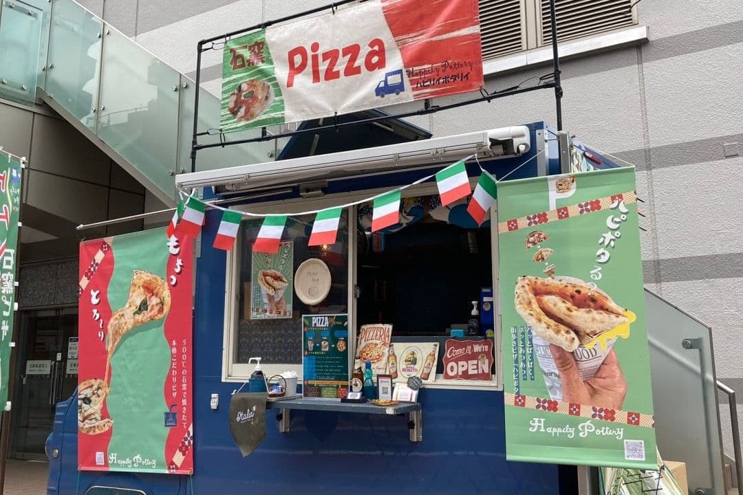 happily pottery500℃の石窯を使い、その場で生地を伸ばし焼き上げる「熱々のもちもちpizza」をぜひお試しください!本格pizzaをワンハンドで楽しめる「ハピポタ」もおススメです! |