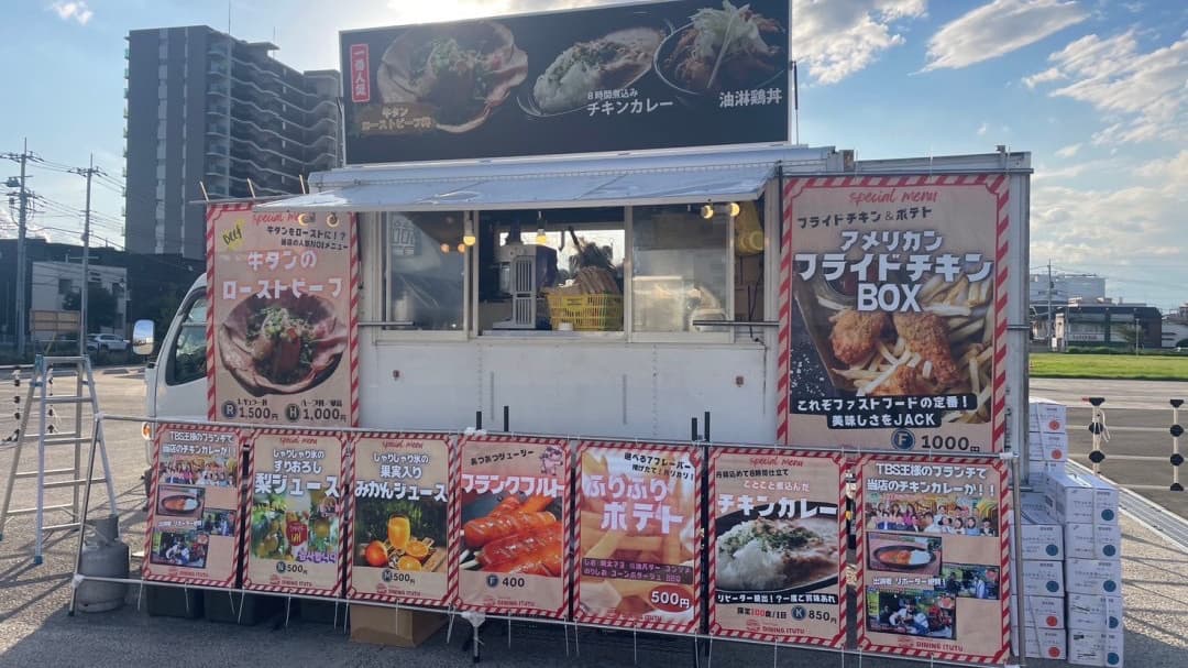 ダイニングいつつ 当キッチンカーは、「ダイニングいつつ」の移動販売車として出店しており、店舗の人気メニューを販売できるためラインナップがとても豊富です。当店自慢の「牛タンローストビーフ」を是非ご賞味ください。 販売品目●牛タンローストビーフ丼●ネギまみれのネギトロ丼●ふりふりポテト(フレーバー7種)●アメリカンチキンBOX●その他、ドリンク類 出店者募集 協賛企業募集